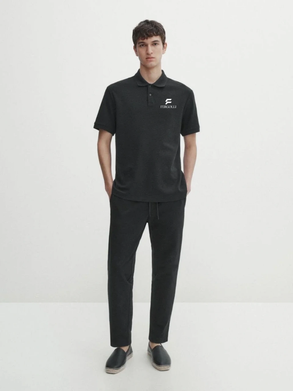Yakası Düğmeli Yakalı Pike Baskılı T-Shirt - Beyaz