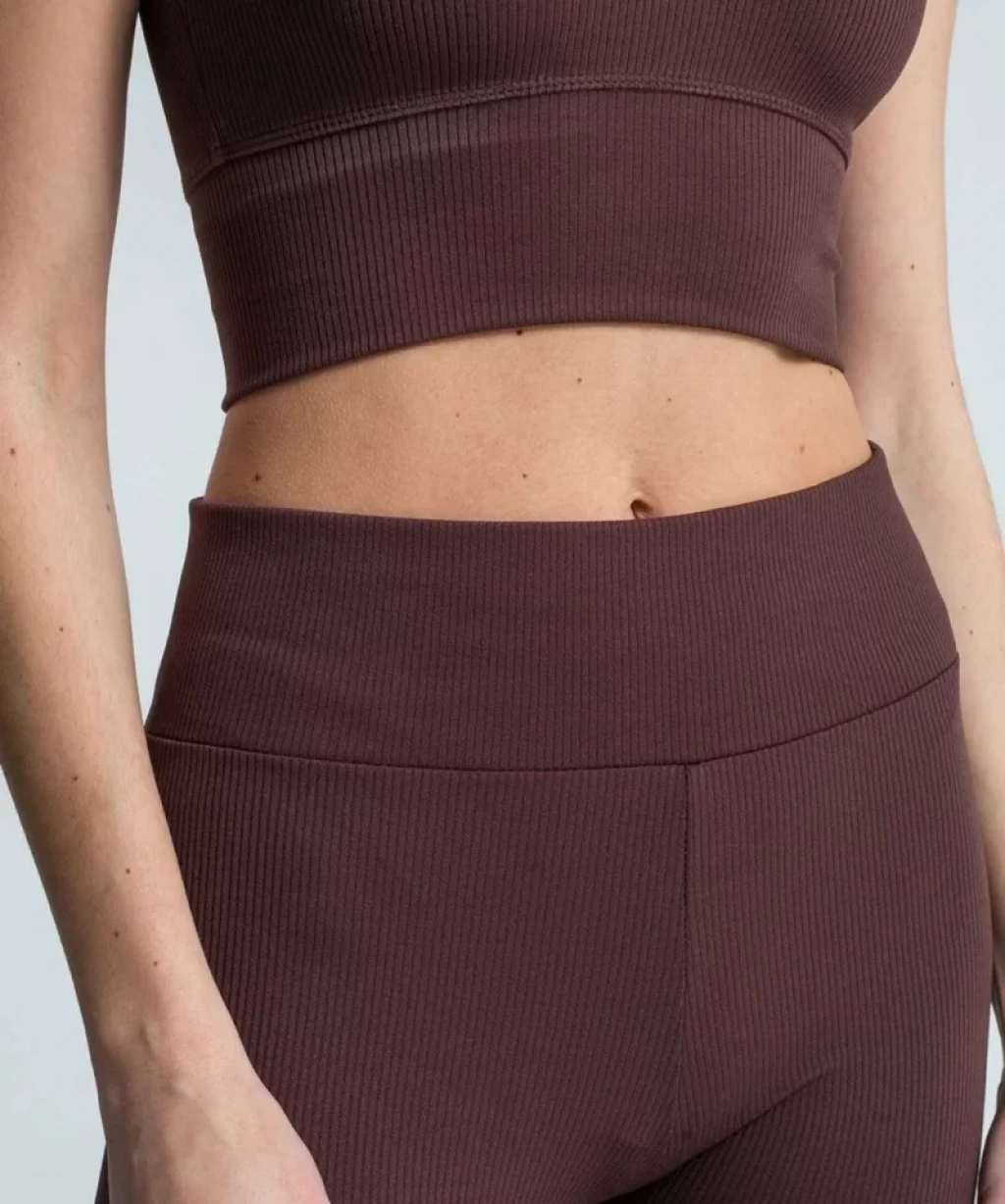 Yüksek Bel Fitilli Tayt - Kahverengi