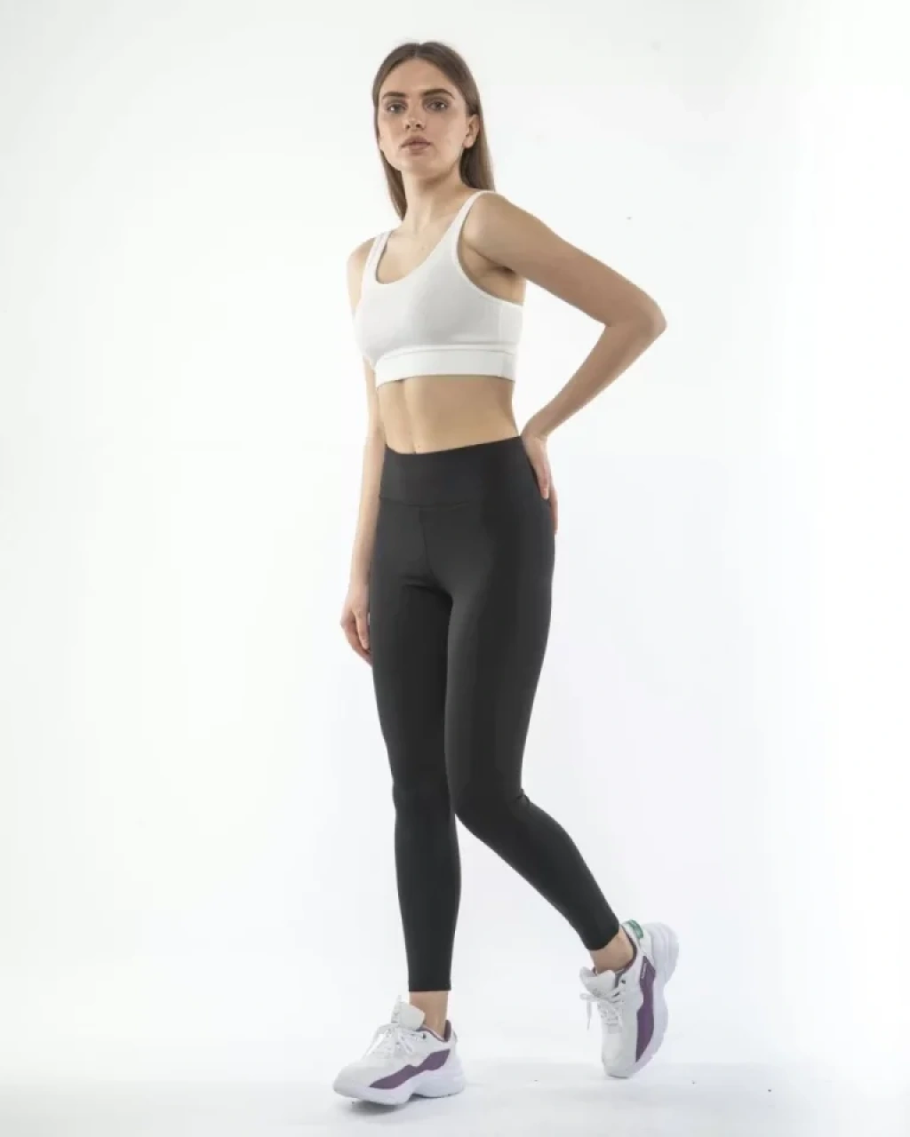 Yüksek Bel Geniş Kemer Dalgıç Tayt - Siyah